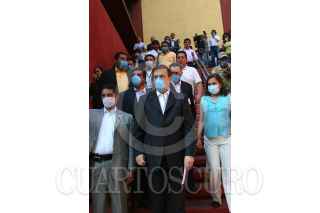 MÉXICO, .D.F,. 06MAYO2009.- Marcelo Ebrard Casaubon jefe de gobierno del Distrito Federal, a su salida del Registro Publico de la Propiedad y el Comercio del D.F., donde reviso las medidas de salud para evitar contagios por el virus de la influenza humana FOTO: RICARDO CASTELAN/CUARTOSCURO.COM
