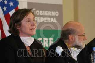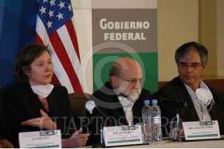 MÉXICO D.F., 07MAYO2009.- Carlos Rico Ferrat, Subsecretario para America del Norte de la Secretaria de Relaciones Exteriores, encabezo la sencilla ceremonia con la cual se agradeció la cooperación de los Estados Unidos durante la emergencia por la presencia del virus de la Influenza Humana (AH1N1) en nuestro país, el subsecretario fue acompañado por Mauricio Hernández Ávila, Subsecretario de Prevención y Promoción de la Salud y de Leslie Basset, Encargada de Negocios de la embajada de los Estados Unidos, esta ceremonia se realizó en las instalaciones de la Secretaria de Relaciones Exteriores. FOTO: GUILLERMO PEREA/CUARTOSCURO.COM