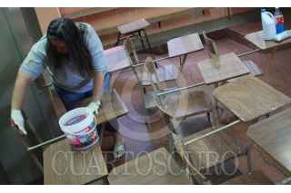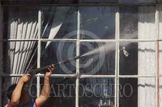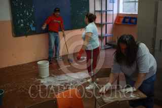 MÉXICO D.F., 08MAYO2009.- Padres de Familia realizaron esta mañana la jornada de limpieza y desinfección en la escuela primaria "Hispanoamericana", ya que se estapera que el próximo Lunes regresen a las clases todos los niños que cursan el nivel primaria, luego de que se suspendieran las clases por el brote del virus de la influenza Humana FOTO: SÁSHENKA GUTIERREZ/CUARTOSCURO.COM