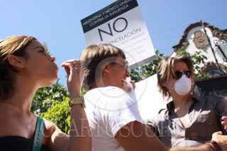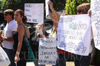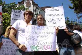 MÉXICO D.F., 08MAYO2009.- Un grupo de argentinos encabezados por los actores Juan Soler y su esposa Maki se dieron cita en la embajada Argentina donde manifestaron su desacuerdo ante la posición de su gobierno ante la epidemia de influenza en México y Pidieron que rectifiquen su posición pues la mala imagen afecta sus negocios en México. FOTO: SÁSHENKA GUTIERREZ/CUARTOSCURO.COM