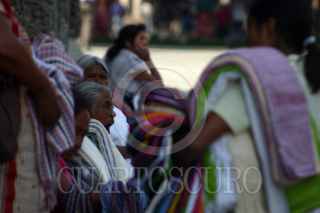 OAXACA, OAXACA, 08MAYO2009.- Vendedoras de trajes regionales esperan en fila frente ala catedral del estado en lo que aparentemente pareciera un día bajo en ventas. FOTO: MAX NÚÑEZ/CUARTOSCURO.COM