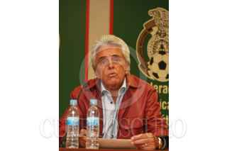 MÉXICO D.F., 08MAYO2009.- Justino Compeán, titular de la Federación Mexicana de Futbol durante una conferencia de prensa en donde anuncio que clubes y selección mexicana no participarán en la Copa Libertadores, Sudamericana y Copa América por un incumplimiento de acuerdo por parte de la Conmebol. FOTO: ALBERTO VERA/CUARTOSCURO.COM