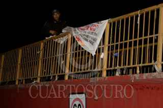 ZIHUATANEJO, GUERRERO, 11MAYO2009.- Dos narcomantas fueron halladas en puentes peatonales de la colonia El Limón y El Hujal dirigidas al presidente Felipe Calderón Hinojosa y en las que se señala a funcionarios de su gobierno de romper un codigo al vincular a familiares de narcotraficantes en actividades ilicitas. Las mantas fueron retiradas por efectivos de la policía estatal preventiva. FOTOS: CHUY MEZA/CUARTOSCURO.COM