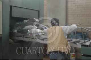 NEZAHUALCOYOTL, ESTADO DE MÉXICO, 11MAYO2009.- El ayuntamiento local de este municipio cremó dos mil cubrebocas en el panteón municipal. mismos que se utiliaron durante la contingencia sanitaria para evitarla propagación de la influenza humana tipo A (H1N1) en la localidad. Este material fue recepcionado en los camiones recolectores de baura y puestos en el contenedor especial en el basurero Neza Bordo 2. El jefe del crematorio y panteón municipal, Guillermo Almanza Vázquez, informó que durante 30 minutos y a 782 grados centígrados se cremaron los cubrebocas. FOTO: MARIO NULO/CUARTOSCURO.COM