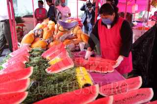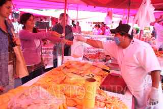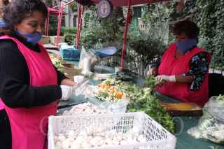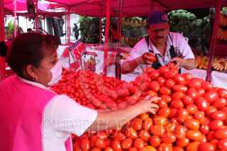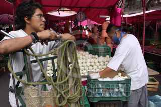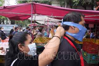 MÉXICO, D.F., 12MAYO2009.- En el mercado sobre ruedas ubicado en la colonia Condesa, en la delegación Cuauhtemoc, autoridades del gobierno capitalino revisaron que los tianguista cumplieran con las medidas sanitarias como el uso de tapabocas y el de los guantes de látex para contener la propagación del virus de la influenza humana. FOTO: MOISÉS PABLO/CUARTOSCURO.COM