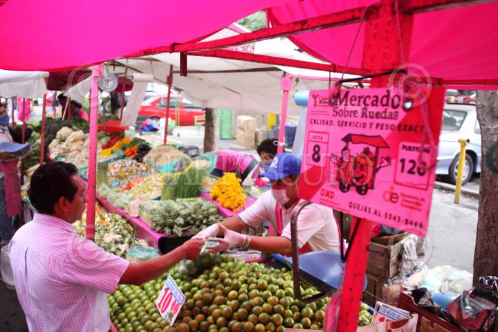 MÉXICO, D.F., 12MAYO2009.- En el mercado sobre ruedas ubicado en la colonia Condesa, en la delegación Cuauhtemoc, autoridades del gobierno capitalino revisaron que los tianguista cumplieran con las medidas sanitarias como el uso de tapabocas y el de los guantes de látex para contener la propagación del virus de la influenza humana. FOTO: MOISÉS PABLO/CUARTOSCURO.COM