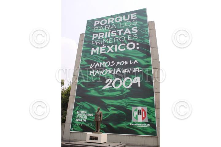 MÉXICO, D.F., 12MAYO2009.- Una enorme manta se puede apreciar en la sede general del PRI, en la que se plantea parte de la plataforma electoral del priismo para las próximas elecciones. FOTO: MOISÉS PABLO/CUARTOSCURO.COM