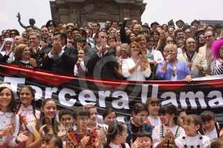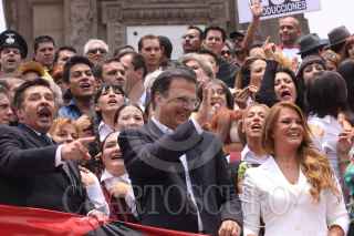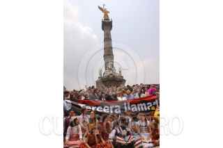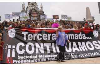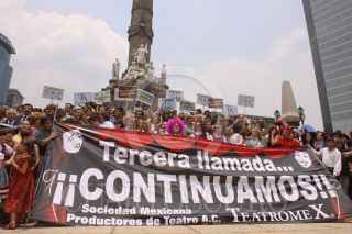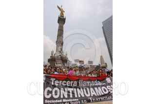 MÉXICO, D.F., 13MAYO2009.- Cesar Bono, protagonista de "Defendiendo a el Cavernícola", participó en la llamada "foto histórica", que actores, productores, tramoyista, etc., se tomaron en las escalinatas del Ángel de la Independencia para invitar a el público a que regresen a los teatros, ya que las medidas sanitarias tomadas durante la contingencia sanitaria por la epidemia de la influenza humana a afectado a este séctor, según señalaron los organizadores. FOTO: MOISÉS PABLO/CUARTOSCURO.COM