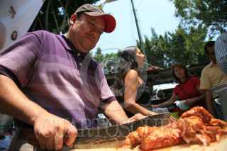 CUERNAVACA, MORELOS,14MAYO2009.- Locatarios del mercado Adolfo López Mateos regalaron carnitas de puerco ala gente, esto debido a ala gripa de la influenza H1N1 ha hecho que las ventas de carne de puerco se vallan para abajo. FOTO: LUIS GIRON/CUARTOSCURO.COM