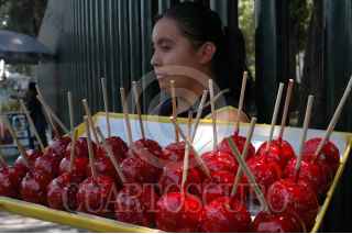 ECATEPEC, EDO. DE MÉXICO, 15MAYO2009.- Las manzanas cubiertas de dulce son un postre tradicional mexicano que aún prevalece su elaboración y venta en este municipio y en otras partes del país. FOTO: MARIO NULO/CUARTOSCURO.COM