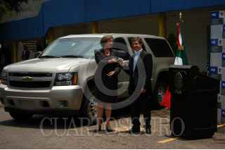 MEXICO D.F., 15MAYO2009.- Leslie Bassett, Encargada de Negocios de los Estados Unidos en nuestro país, realizo la entrega de ocho camionetas blindadas a la PGR, cuyo costo es superior a un millón de dólares y están diseñadas para aumentar la seguridad en la lucha contra el crimen el crimen organizado, dichas unidades fueron recibida de manera simbólica por el Oficial Mayor, Rafael Ibarra. FOTO: GUILLERMO PEREA/CUARTOSCURO.COM