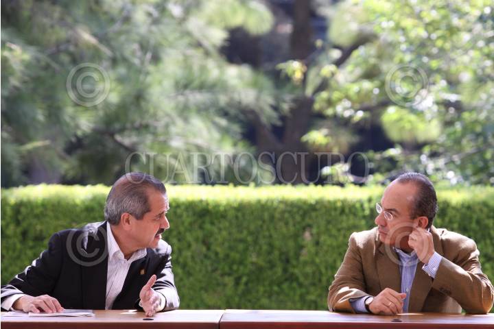 MÉXICO, D.F., 16MAYO2009.- Felipe Calderón Hinojosa, Presidente de México, durante la ceremonia "Contribución de México a la Organización Mundial de la Salud para la Producción de la Vacuna del Virus A H1N1, en la explanada del monumento a Francisco I. Madero en Los Pinos. FOTO: MOISÉS PABLO/CUARTOSCURO.COM