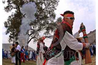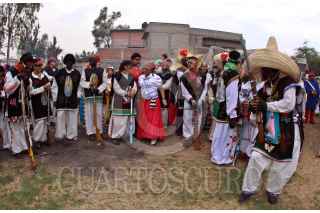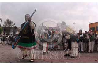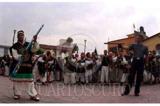 MÉXICO, D.F., 16MAYO2009.- Habitantes de Aragón realizaron esta tarde la representación de la batalla de puebla que se realizaba el 5 de Mayo pero debido a la contingencia sanitaria por el brote de influenza humana donde se cancelaron todas las actividades culturales, los habitantes del lugar salieron hoy a las calles donde realizaron detonaciones con polvora y marcharon con música, para finalmente cumplir con su festividad. FOTO: SÁSHENKA GUTIÉRREZ/CUARTOSCURO.COM