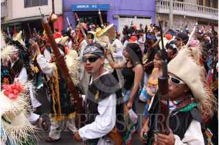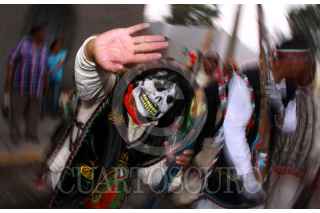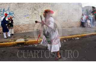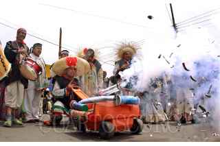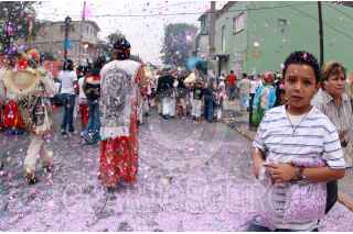 MÉXICO, D.F., 16MAYO2009.- Habitantes de Aragón realizaron esta tarde la representación de la batalla de puebla que se realizaba el 5 de Mayo pero debido a la contingencia sanitaria por el brote de influenza humana donde se cancelaron todas las actividades culturales, los habitantes del lugar salieron hoy a las calles donde realizaron detonaciones con polvora y marcharon con música, para finalmente cumplir con su festividad. FOTO: SÁSHENKA GUTIÉRREZ/CUARTOSCURO.COM
