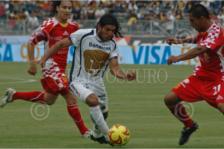 MÉXICO, D.F., 16MAYO2009.- Jugadores de los pumas de la UNAM festejan la tercera anotación en contra de los Tecos de la UAG en partido de cuartos de final del Clausura 2009 del futbol mexicano; venciendo los Pumas 3 goles a 0 y pasando estos a las semifinales. FOTO: LUZ ACEVEDO/CUARTOSCURO.COM