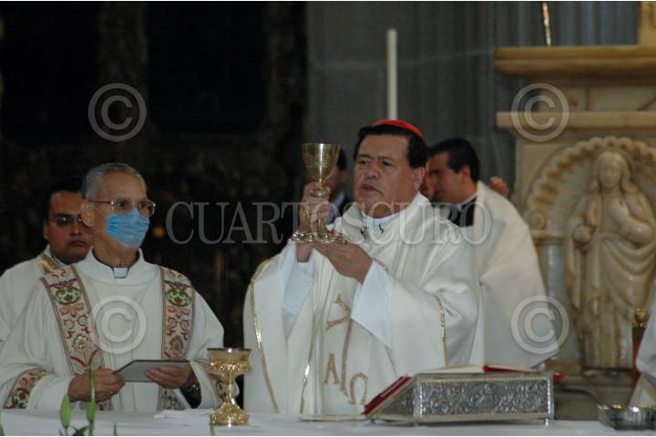 MÉXICO, D.F., 17MAYO2009.- El cardenal Norberto Rivera Carrera ofrece la comunión a los fieles dentro de la misa dominical que se celebro en la Catedral Metropolitana. FOTO: RODOLFO ANGULO/CUARTOSCURO.COM