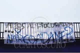 CUERNAVACA, MORELOS.,17MAYO2009.- Despues de las renuncias de altos mando de seguridad en Morelos Una narcomanta fue dejada en un puente peatonal de Cuernavaca en la que se critica la presunta relación del Gobernador Marco Adame con el crimen organizado. FOTO: LUIS GIRON/CUARTOSCURO.COM