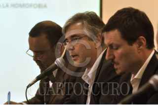 MÉXICO, D.F., 18MAYO2009.- José Antonio Izazola, Director General de CONASIDA, ofreció una conferencia de prensa en las oficinas de la ONU en México, esto con motivo del "Día Internacional Contra La Homofobia". Tambien estubieron presentes el Sub Secretario de Prevención de la Secretaría de Salud, Mauricio Hernández y Arnaud Peral de ONUSIDA. FOTO: EDUARDO MORALES/CUARTOSCURO.COM