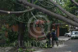 MÉXICO, D.F., 18MAYO2009.- Un árbol se derrumbo debido a las fuertes rachas de viento en la calle de Pitagoras 950 en la colonia Narvarte, elementos del cuerpo de Bomberos acudieron al lugar para retirar eel árbol que cayo sobre una casa. FOTO: SAÚL LÓPEZ/CUARTOSCURO.COM