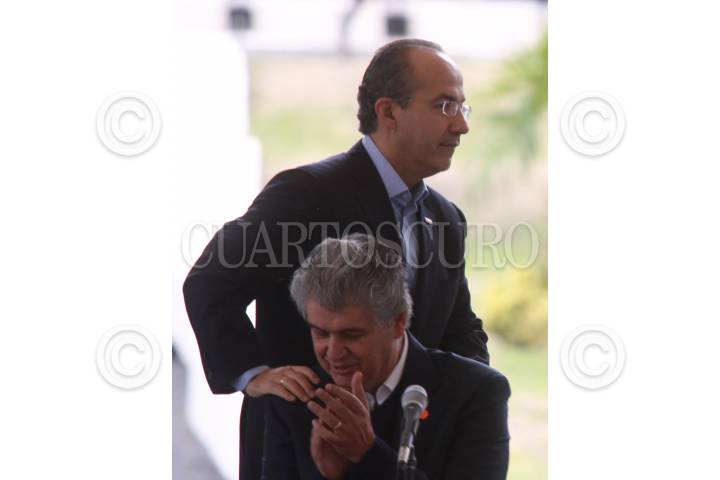 MÉXICO, D.F., 19MAYO2009.- Felipe Calderon Hinojosa presidente de México, acompañado por Alfredo Elías Ayub Director General de la Comisión Federal de Electricidad durante el anuncio por parte del mandatario federal sobre la puesta en operación de una red de fibra óptica a nivel nacional, con la cual México se moderniza en materia de telecomunicaciones FOTO: SÁSHENKA GUTIÉRREZ/CUARTOSCURO.COM