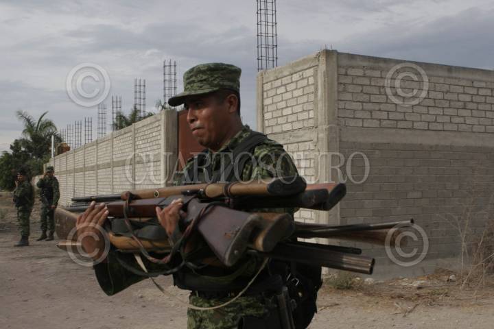 CRUZ DE ELOTA, SINALOA, 19MAYO2009.- Elementos del ejército mexicano decomisaron tres mil plantas de mariguana, 12 armas largas, 10 cortas y dos paquetes de mariguana de dos kilogramos cada una en el poblado Potrerillo del Norte como parte del operativo permanente de lucha contra el narcotráfico. FOTO: IVAN STEPHENS/CUARTOSCURO.COM