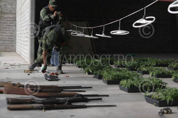 CRUZ DE ELOTA, SINALOA, 19MAYO2009.- Elementos del ejército mexicano decomisaron tres mil plantas de mariguana, 12 armas largas, 10 cortas y dos paquetes de mariguana de dos kilogramos cada una en el poblado Potrerillo del Norte como parte del operativo permanente de lucha contra el narcotráfico. FOTO: IVAN STEPHENS/CUARTOSCURO.COM