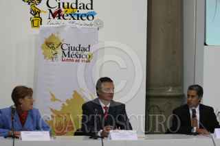 MÉXICO, D.F., 20MAYO2009.- Elena Cepeda de Leon, secretaria de Cultura del Distrito Federal, Marcelo Ebrad Casaubon jefe de gobierno capitalino y Alejandro Rojas, Secretario de Turismo del Distrito Federal, durante conferencia de prensa donde anunciaron que 46 países de Asia, América y Europa, así como representantes de la Organización de las Naciones Unidas, han confirmado su asistencia a la Feria de las Culturas Amigas de la Ciudad de México que se llevará a cabo en avenida Paseo de la Reforma entre el 6 y el 14 de junio. FOTO: RICARDO CASTELAN/CUARTOSCURO.COM