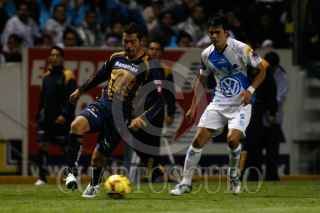 PUEBLA, PUEBLA, 20MAYO2009.- Los Pumas de la UNAM dominaron en el estadio Cuauhtémoc, tras vencer al Puebla de la Franja 2 a 1 en el partido de ida del torneo clausura 2009 de la primera división. FOTO: JAVIER PALACIOS/CUARTOSCURO.COM