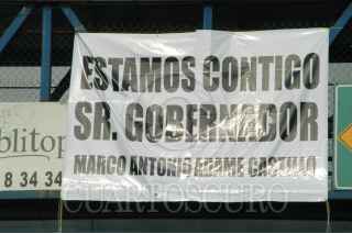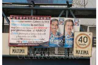 CUERNAVACA, MORELOS., 21MAYO2009.- La capital morelense amaneció tapizada de narco mantas colocadas en puentes peatonales de las principales avenidas de Cuernavaca, se colocaron dos tipos de mantas unas en apoyo al gobernador Marco Adame y otras en su contra resaltando su apoyo al ex secretario de seguridad pública Luis Ángel cabeza de Vaca que esta en arraigo por autoridades federales. FOTO: LUIS GIRON/CUARTOSCURO.COM