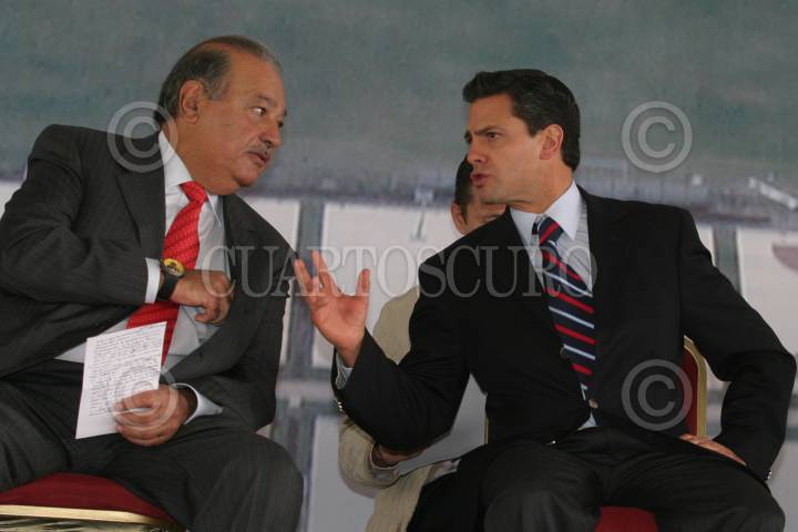 CIUDAD NEZAHUALCOYOTL, ESTADO DE MÉXICO., 21MAYO2009.- Carlos Slim Helú, fundador del grupo Carso, y el gobernador del estado, Enrique Peña Nieto, durante se reteiran en una camioneta despues de la inauguracion de la ciudad deportiva del proyecto Ciudad Jardin Bicentenario. FOTO: SAÚL LÓPEZ/CUARTOSCURO.COM
