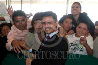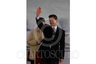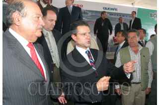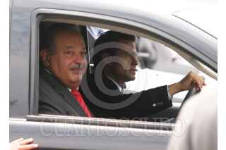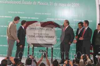 CIUDAD NEZAHUALCOYOTL, ESTADO DE MÉXICO., 21MAYO2009.- Carlos Slim Helú, fundador del grupo Carso, y el gobernador del estado, Enrique Peña Nieto, durante se reteiran en una camioneta despues de la inauguracion de la ciudad deportiva del proyecto Ciudad Jardin Bicentenario. FOTO: SAÚL LÓPEZ/CUARTOSCURO.COM