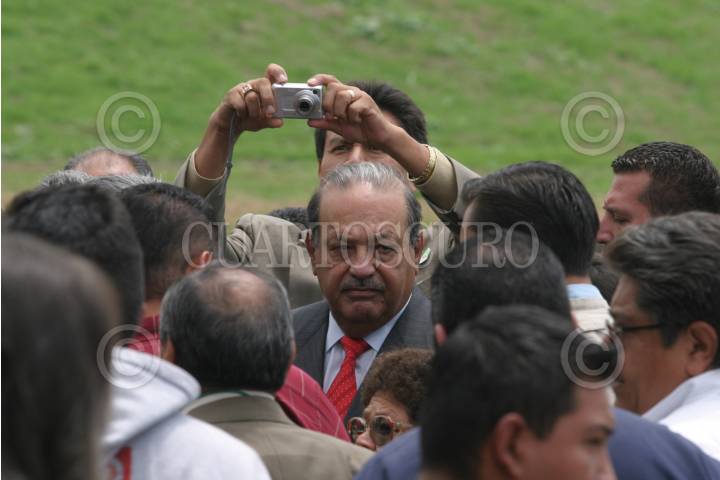 CIUDAD NEZAHUALCOYOTL, ESTADO DE MÉXICO., 21MAYO2009.- Carlos Slim Helú, fundador del grupo Carso, y el gobernador del estado, Enrique Peña Nieto, durante se reteiran en una camioneta despues de la inauguracion de la ciudad deportiva del proyecto Ciudad Jardin Bicentenario. FOTO: SAÚL LÓPEZ/CUARTOSCURO.COM