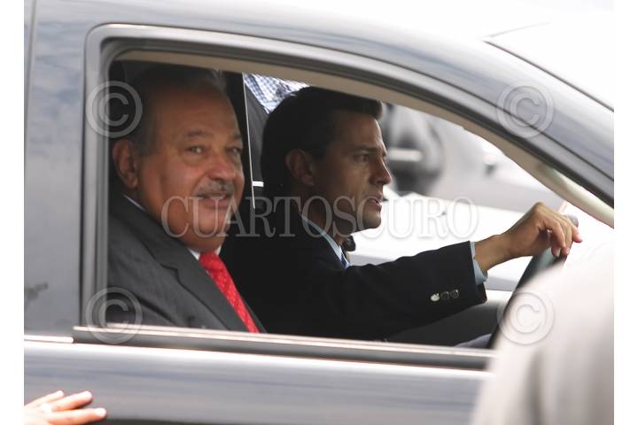 CIUDAD NEZAHUALCOYOTL, ESTADO DE MÉXICO., 21MAYO2009.- Carlos Slim Helú, fundador del grupo Carso, y el gobernador del estado, Enrique Peña Nieto, durante se reteiran en una camioneta despues de la inauguracion de la ciudad deportiva del proyecto Ciudad Jardin Bicentenario. FOTO: SAÚL LÓPEZ/CUARTOSCURO.COM