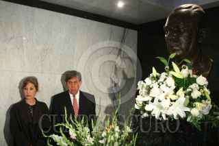MÉXICO, D.F., 21MAYO2009.- Camila Cardenas y Cuauhtémoc Cárdenas después de montar una guardia de honor en el Monumento a la Revolución en memoria del 114 aniversario del nacimiento de Lázaro Cardenaz del Rió FOTO: RICARDO CASTELAN/CUARTOSCURO.COM