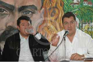 MÉXICO, D.F., 21MAYO2009.- Los senadores Ricardo Moreal y Alejandro González Yañez, ofrecieron una conferencia de prensa en la cual abordo el motivo que lo orillo a Monreal Ávila, a pedir licencia, ya que hace unos días la gobernadora de Zacatecas, Amalia García, lo acuso de tener nexos con el narcotráfico, sin embargo el negó estas acusaciones y señalo que es parte de una guerra sucia que han emprendido en contra suya y de su familia, esto en la sede del PT. FOTO: IVÁN MENDEZ//CUARTOSCURO.COM