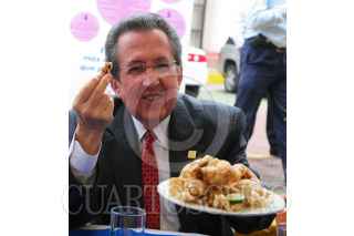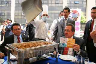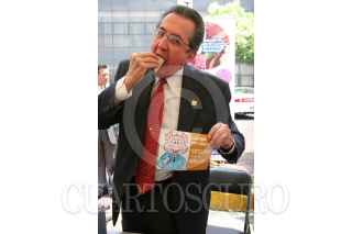 MÉXICO, D.F., 21MAYO2009.- EL secretario de la Reforma Agraria, Abelardo Escobar Prieto, durante la degustación de carnitas para promover el consumo de carne de puerco, cuya imagen se vio deteriorada por la epidemia del virus de influenza humana AN1H1, antes denominado porcino. FOTO: RICARDO CASTELAN/CUARTOSCURO.COM