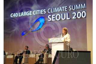 SEUL KOREA., 21MAYO2009.- La secretaria de Medio Ambiente de México, Martha Delgado, durante su ponencia en la tercera Cumbre de alcaldes del "Grupo de las Grandes Ciudades por el Clima" (conocido también como C40). FOTO: JAIME WERNER/CUARTOSCURO.COM