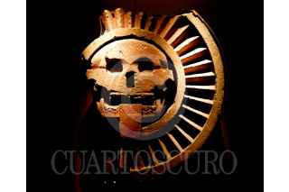 MÉXICO, D.F., 21MAYO2009.- Alrededor de 430 piezas originales integran la exposición "Teotihuacán. Ciudad de los Dioses", que se exhibirá en el Museo Nacional de Antropología a partir de este mes y hasta agosto, para luego partir en una gira por diversos recintos de Europa, con el título Arte y esplendor teotihuacano. En la imagen vaso tripode con yelmo de coyote. FOTO: MELITÓN TAPIA/INAH/CUARTOSCURO.COM