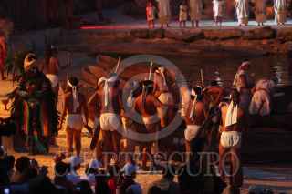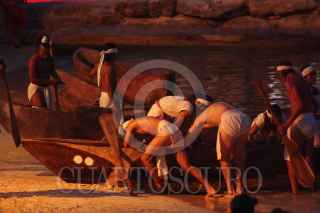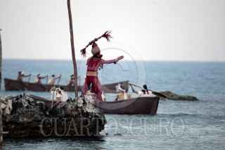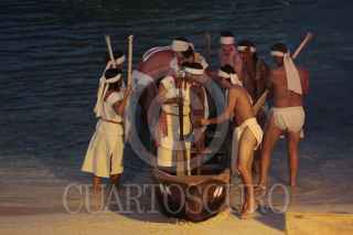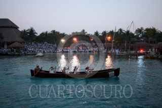 XCARET, QUINTANA ROO, 22MAYO2009.- Dio inicio la tercera edición de la Travesía Sagrada Maya, recreación de la antigua peregrinación realizada por los habitantes de la península de Yucatán, el reto es cruzar a la isla de "Cuzamil" hoy Cozumel para adorar a la diosa "Ixchel" para solicitar sus favores. Xcaret, las 30 canoas recorren alrededor de 28 km solo de ida. FOTO: AMARANTA PRIETO/CUARTOSCURO.COM
