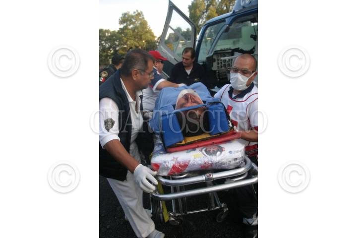 MÉXICO, D.F., 22MAYO2009.- Un policía auxiliar, fue trasladado herido en un helicóptero del grupo cóndores debido a que lo arrolló un trolebús en el eje 3 y Apatlaco en la delegación Iztapalapa. Paramedicos de la Cruz Roja lo trasladaron de la colonia Roma donde descendió el helicoptero, hacia el hospital Alvaro Obregon. FOTO: SAÚL LÓPEZ/CUARTOSCURO.COM