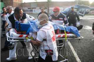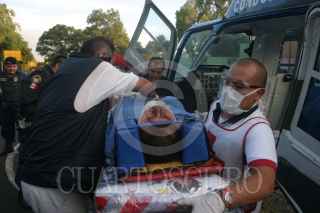 MÉXICO, D.F., 22MAYO2009.- Un policía auxiliar, fue trasladado herido en un helicóptero del grupo cóndores debido a que lo arrolló un trolebús en el eje 3 y Apatlaco en la delegación Iztapalapa. Paramedicos de la Cruz Roja lo trasladaron de la colonia Roma donde descendió el helicoptero, hacia el hospital Alvaro Obregon. FOTO: SAÚL LÓPEZ/CUARTOSCURO.COM