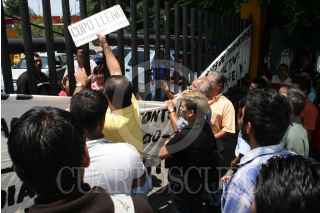 CHILPANCINGO, GUERRERO 23MAYO2009.- Alumnos de la normal rural de Ayotzinapa, tomaron las instalaciones del ex Ineban, para exigir a las autoridades solución a su pliego petitorio de demandas, dejando encerrados a varias personas que se encontraban realizando tramites y trabajadores que se encontraban en el interior del inmueble FOTO: OSCAR ALVARADO/CUARTOSCURO.COM