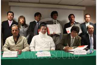 MÉXICO, D.F., 23MAYO2009.- Eduardo Martínez Vázquez, Daniel Salazar, diputado local e Isaias Dueñas Riestra, Presidente de la Asociación Mexicana de Moo Ku Kwan, durante un evento en el cual entregaron reconocimientos a maestros de esta disciplina, esto en el Centro Nacional de Alto Rendimiento. FOTO: MOISÉS PABLO/CUARTOSCURO.COM