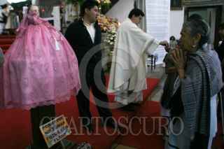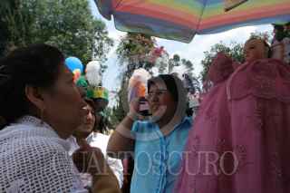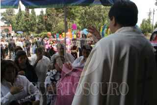 MÉXICO, D.F., 23MAYO2009.- En la delegación de Xochimilco, decenas de personas salieron a las calles al recorrido que se realizó al templo y ex convento San Bernardino, donde se llevo a cabo una misa al ¨Niñopa¨, la cual se había suspendido debido a la epidemia de influenza. Cabe mencionar que esta es una tradición que lleva más de 430 años entre los pueblos y barrios de esta demarcación. FOTO: ENRIQUE ORDÓÑEZ/CUARTOSCURO.COM