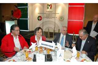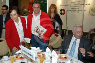 MÉXICO, D.F., 24MAYO2009.- La senadora María de los Ángeles Moreno, el canditado del PRI a la delegación Miguel Hidalgo Martín Olavarrieta, Marco Antonio Bernal de CNOP y Jesús Alberto Cano presidente de la Liga de Economistas durante un desayuno de la Liga de Economistas en apoyo a las campañas de los candidatos del PRI. FOTO: RODOLFO ANGULO/CUARTOSCURO.COM