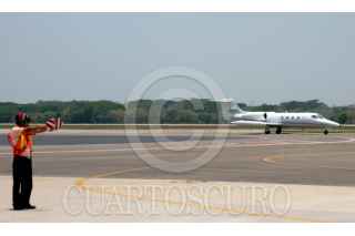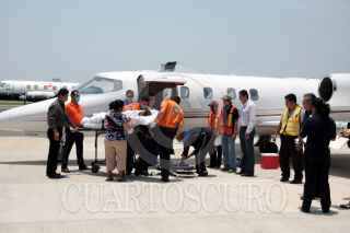 VILLAHERMOSA, TABASCO, 24MAYO2009.- Un jets procedente de la Universidad de Massachussets E.U y con matrícula N568PA aterrizo la mañana de hoy en el hangar del gobierno local con un joven tabasqueño que se encontraba de ilegal y fué atropellado en aquel país cuando era perseguido por autoridades migratorias. FOTO: MARCO POLO GUZMAN HERNANDEZ/CUARTOSCURO.COM