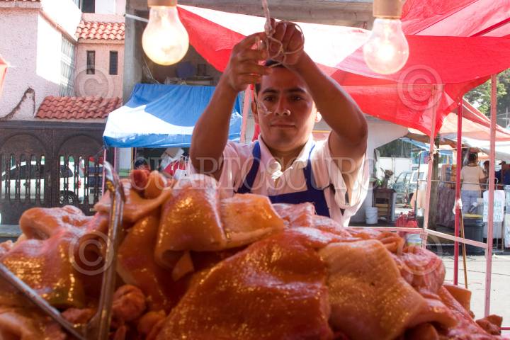 MÉXICO, D.F., 25MAYO2009.- Después de que el brote del virus de la influenza AH1N1 fuera mal nombrado gripe porcina, afecto a cientos de comerciantes dedicados a la venta de tacos de carnitas de puerco, taqueros en este rumbo siguen percibiendo el rezago económico que trajo con sigo esta enfermedad. A pesar de que las autoridades sanitarias anunciaran que la carne porcina no es un agente para el contagio de la influenza humana la cientos de consumidores siguen despreciando este producto. FOTO: RICARDO CASTELAN/CUARTOSCURO.COM