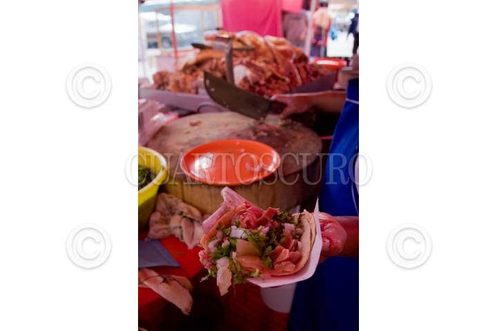 MÉXICO, D.F., 25MAYO2009.- Después de que el brote del virus de la influenza AH1N1 fuera mal nombrado gripe porcina, afecto a cientos de comerciantes dedicados a la venta de tacos de carnitas de puerco, taqueros en este rumbo siguen percibiendo el rezago económico que trajo con sigo esta enfermedad. A pesar de que las autoridades sanitarias anunciaran que la carne porcina no es un agente para el contagio de la influenza humana la cientos de consumidores siguen despreciando este producto. FOTO: RICARDO CASTELAN/CUARTOSCURO.COM