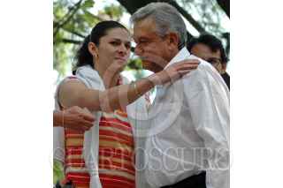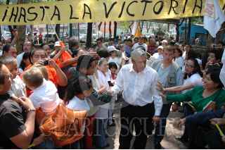 MÉXICO, D.F., 24MAYO2009.- Andres Manuel López Obrador, ex candidato presidencial abordo de su camioneta acompañado de su esposa Beatriz Gutiérrez Müeller al termino de un evento proselitista con candidatos a jefe delegacional y diputados federales y locales en el parque Cañitas sobre la avenida México - Tacuba. FOTO: RODOLFO ANGULO/CUARTOSCURO.COM