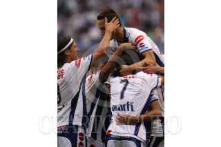 PACHUCA, HIDALGO 24MAYO2009.-El jugador del Pachuca Blas Pérez celebra tras la anotación de gol al equipo de Indios durante el partido de semifinales del torneo clausura del fútbol mexicano que se lleva a cabo en el estadio Hidalgo de Pachuca FOTO: DAVID MARTINEZ/CUARTOSCURO.COM